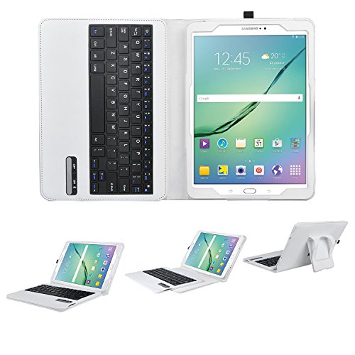 [Description] Exclusive design for Samsung Galaxy Tab S2 9.7 T815N/T810N//T819N/T813N tablet_High quality PU leather cover and soft_ microfiber-lined interior provide full protection for your tablet. With Auto Wake/Sleep Function. Please search ``IVSO + your tablet/mobile+ color`` to take the fastest path to the product you want and have a clear view of other cases we offer in store. 3-In-1 functionality: Bluetooth V3.0 keyboard + Stand + Premium Carrying Case_ it is extremely convenient to carry your tablet to office and travel. Real laptop-style keyboard_ giving you better typing experience than silicone keyboard as other cases Precise cut-off provides full access to all ports and features_ charging time 2.5 - 3 hours; estimated uninterrupted working time 60 hours
