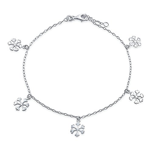 -. Title : Bling Jewelry Dangling Snowflake Adjustable Sterling Silver Anklet 10in