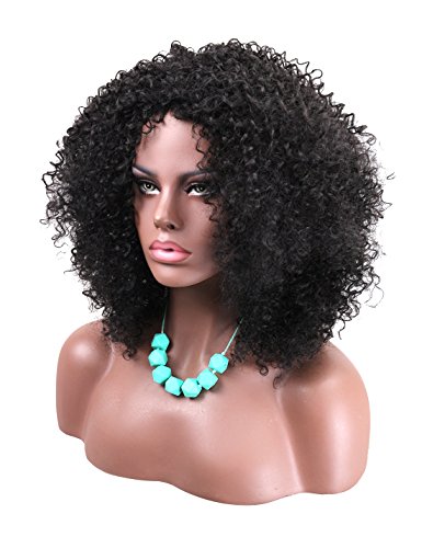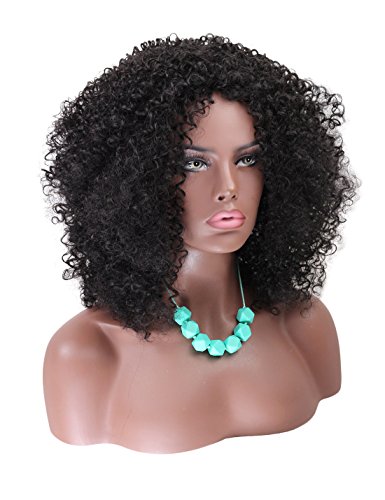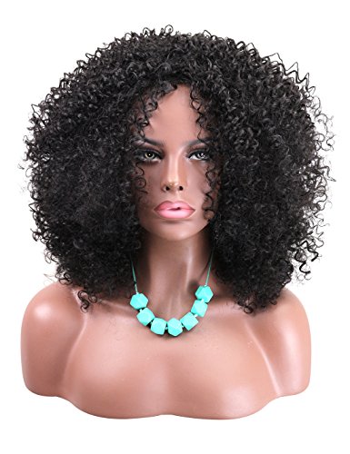 Kalyss African American Women’s Wig Medium Long Afro Kinky Curly Synthetic Hair Wigs for Black Women (Natural Black)
