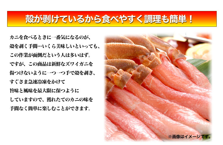 画像は、生ズワイ蟹剥き身のものです。