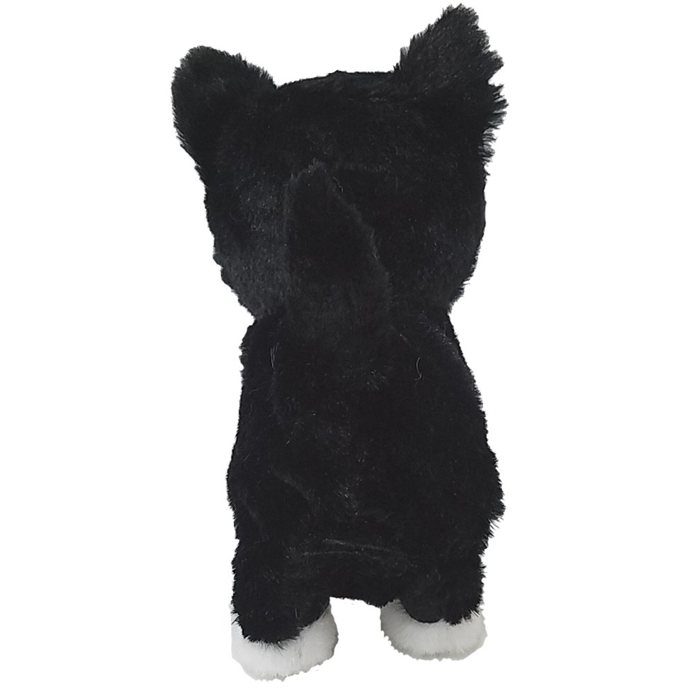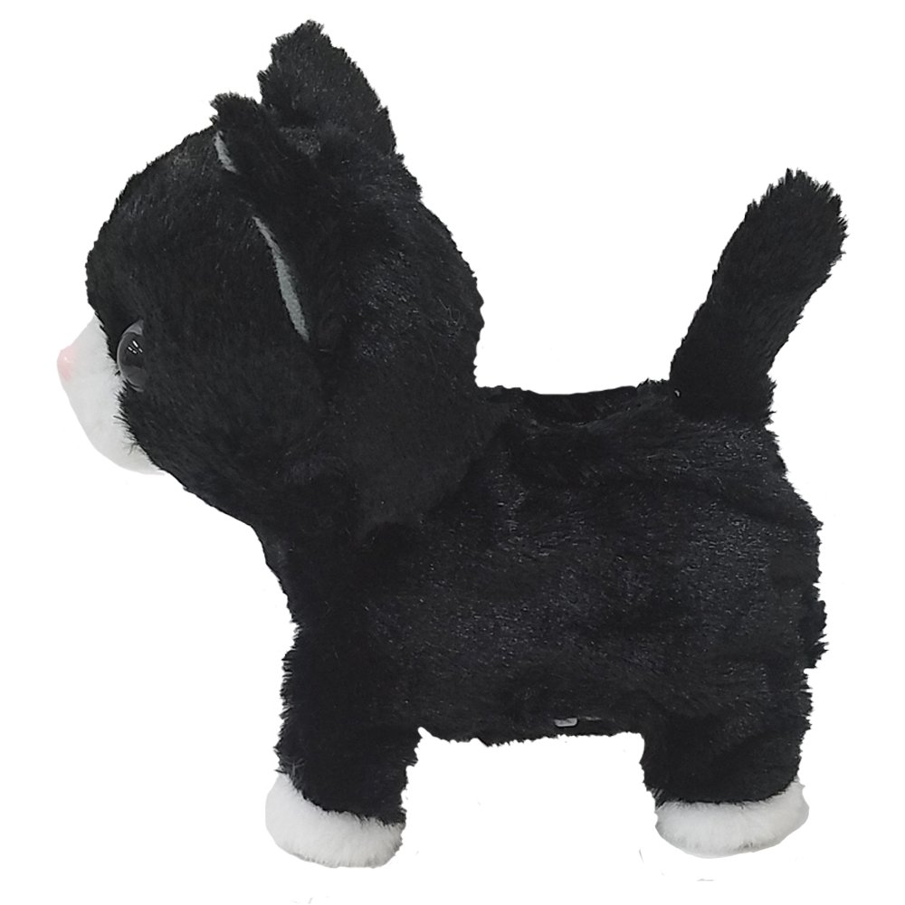 Turn on the switch and put out a big sound like clapping or clicking, or touch a stuffed toy, play the four kinds of voices randomly and walk forward or backward.