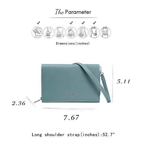 -. Feature : ●1:MATERIAL of CROSSBODY PURSE: High Quality PU Leather,Lining: 100% Polyester and the brand-embossed lining decent the shoulder bag purse.Lightweight and extremely durable material; Soft touch just like real leather purse. 2:CLOSURE:Flap Magnetic Closure CLOSURE: Flap Magnetic Closure / ●2:CLOSURE of WOMAN BAGS: High Quality Flap Magnetic Closure / ●3:POCKETS OF CROSS-BODY BAGS:2 Interior lined compartments,1 Interior WALLET:6 Cards Slots,1 Side Zipped Pocket,enough room for your cell phone,lipsticks,cards and tablets / ●4:DIMENSIONS OF LADIES PURSE:7.67"L x 2.36"W x 5.11"H, 52.7"Detachable and Adjustable CROSS-BODY STRAP / ●5:SHOULDER BAG FEATURE: 1 Dust bag Included,Classic Design,Embossed Brand Signature Logo,Wallet Structure inside,could be used as Clutch/Wallet/Cross-body Purse
