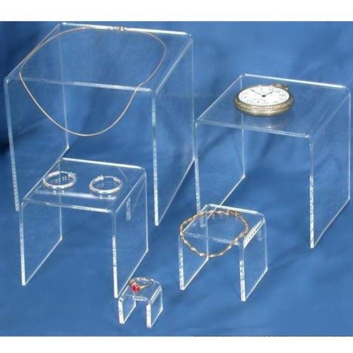 -. Title : Marketing Holders 5 Clear Acrylic Jewelry Display Risers Showcase Stands