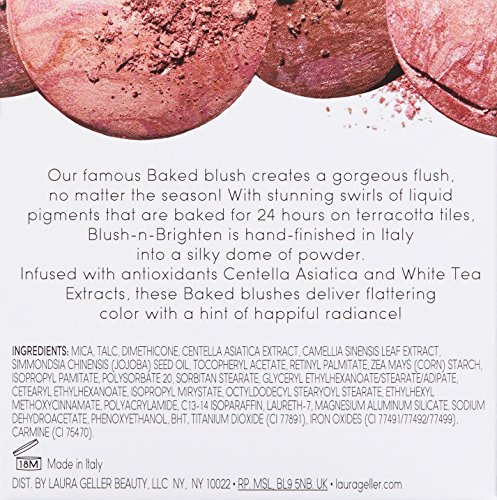Our famous Baked blush creates a gorgeous flush, no matter the season! With stunning swirls of liquid pigments that are baked for 24 hours on terracotta tiles, Blush-n-Brighten is hand-finished in Italy into a silky dome of powder. Infused with antioxidants Centella Asiatica and White Tea Extracts, these Baked blushes deliver flattering color with a hint of happiful radiance!Feature