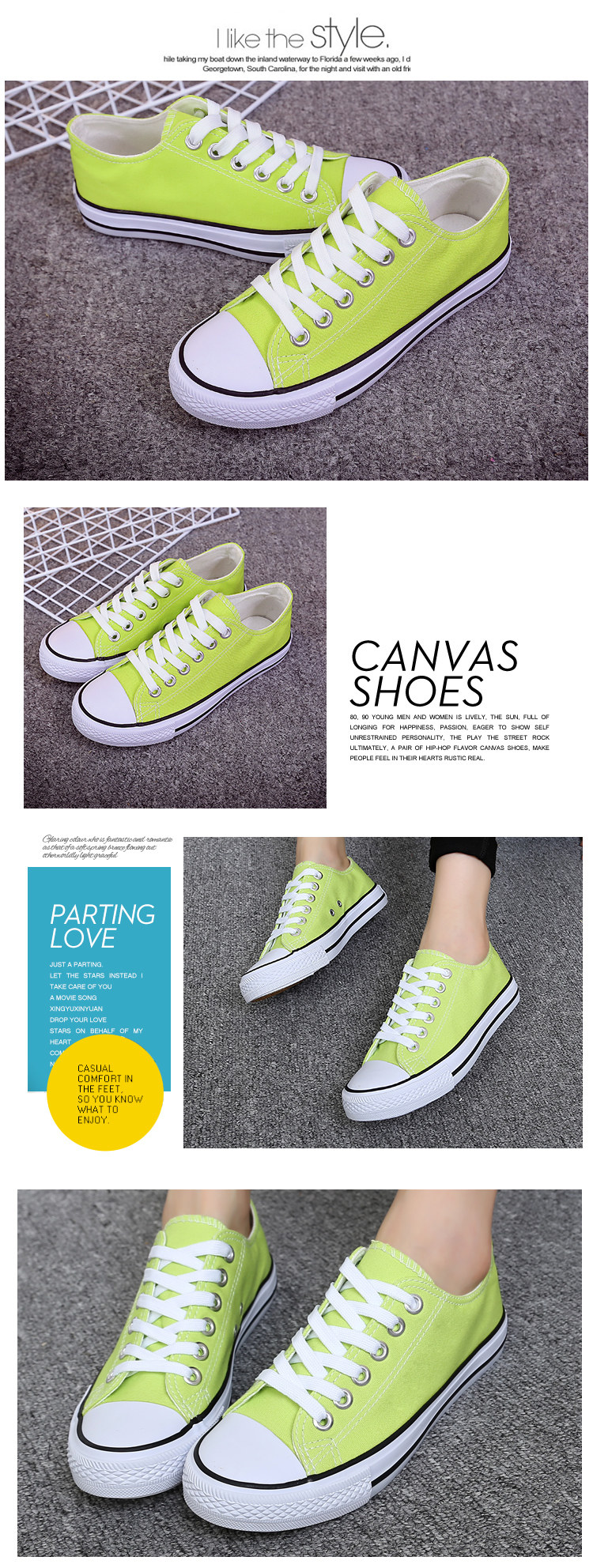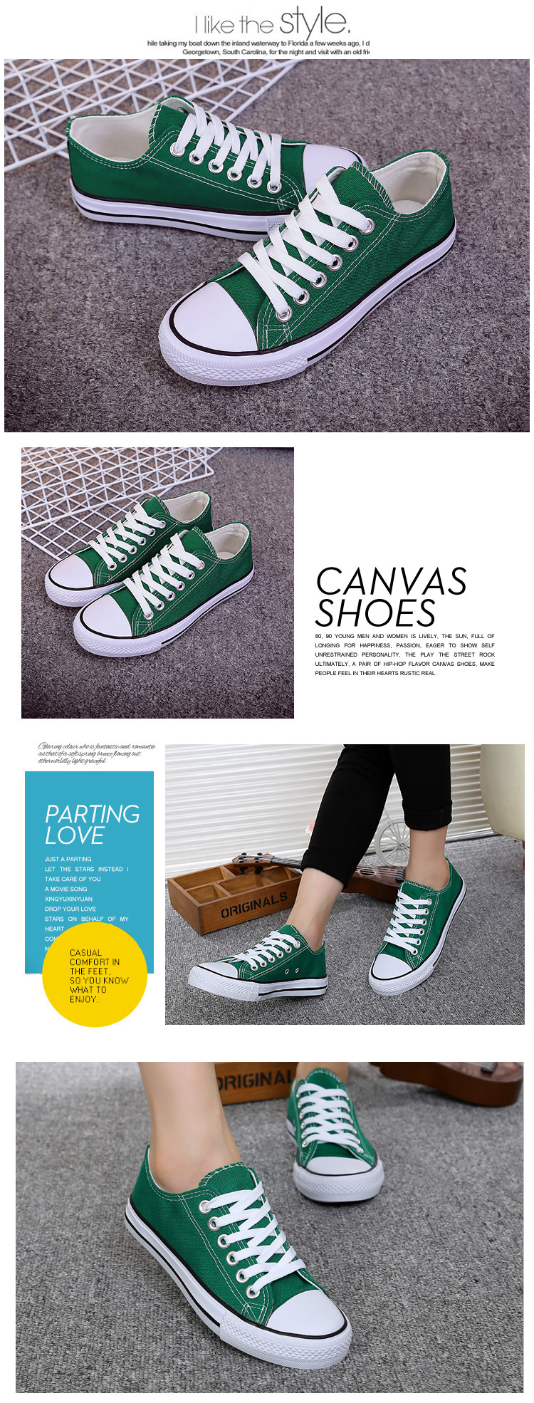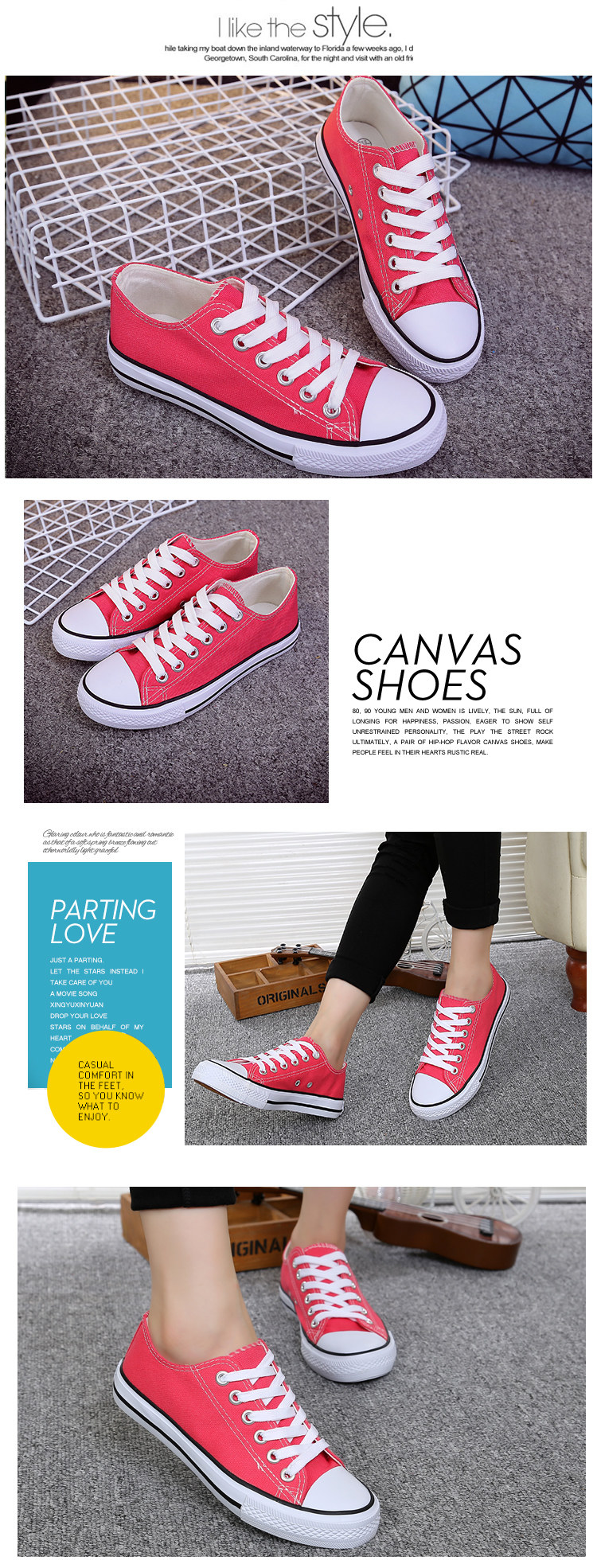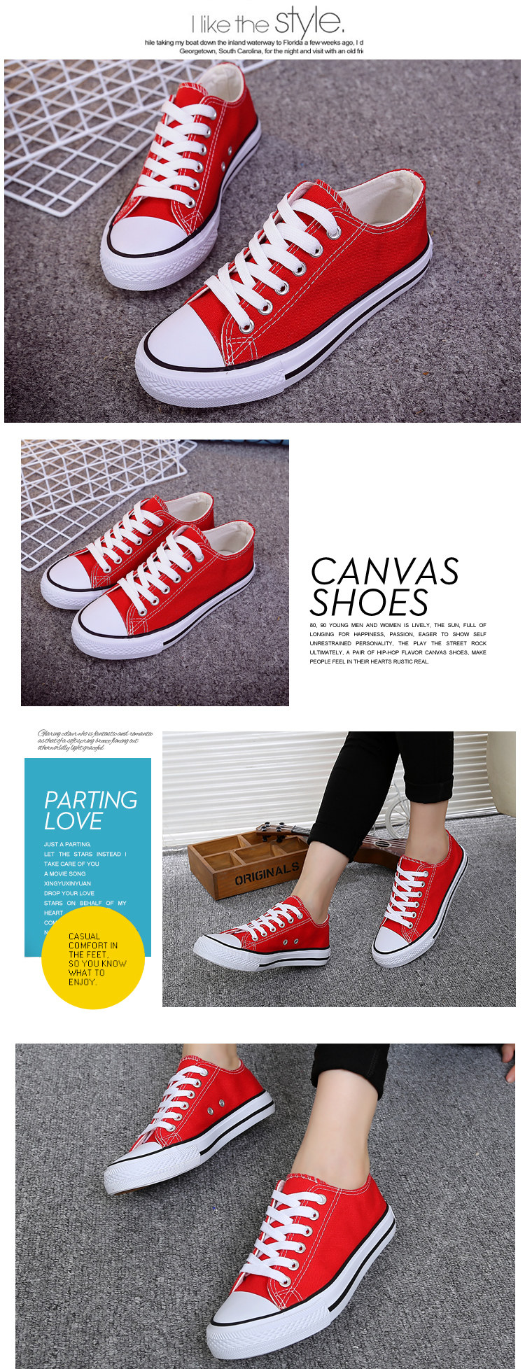 时尚简约,帆布鞋 至亲爱的买家,由于我们鞋子号表,难免会有一些不同。建议买家买大一号, 至少能穿厚版袜子来填补一些小空间或者绑紧鞋带哦。以上是楼主的一些小小建议,有任何不对,请买家见谅,也请买家给予重要的评语,我会加以改进哦。 Dear Buyers, our size chart measurement might be different due to manual measurement, advise to purchase one size bigger and wear thicker socks to fill up the space. Just our own opinion, if any mistakes we apologize. Please leave comment for our improvement to serve you better. THANKS