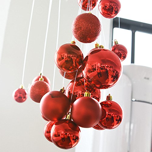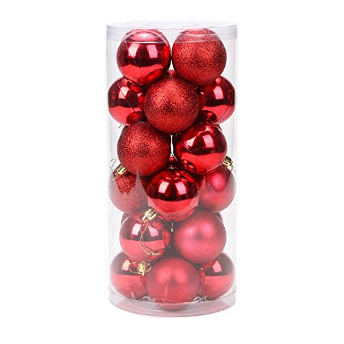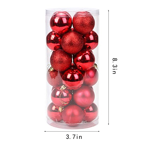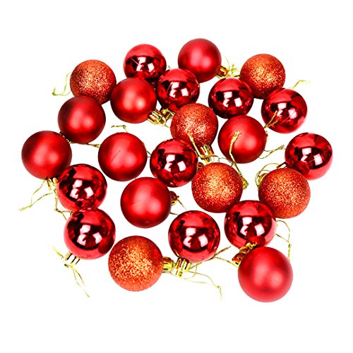 Multifit 24 PCS Christmas Tree Hanging Decorations Sparkle Balls Pendant Oranments for Parties(Red)