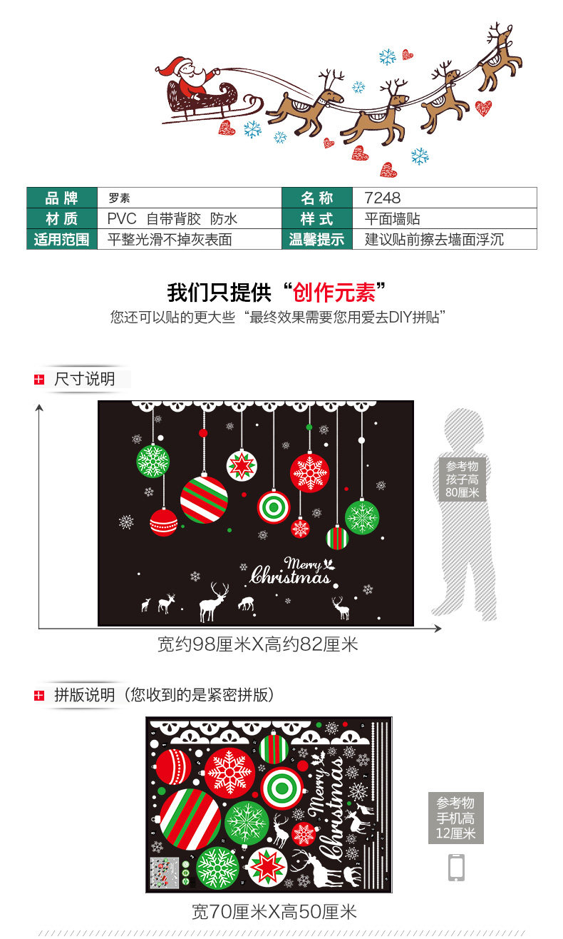 圣诞吊球装饰品贴纸店铺活动场景布置窗户窗花橱窗贴玻璃墙贴贴画