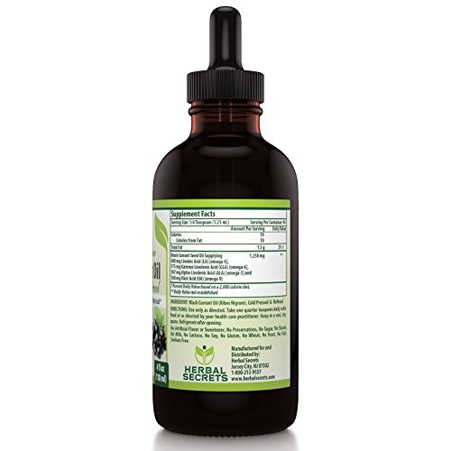 -. Feature : AN EXCELLENT SOURCE OF ESSENTIAL FATTY ACIDS Herbal Secrets black currant supplement provides linoleic acid, gamma-linoleic acid, alpha linoleic acid and oleic acid in each 1/4-teaspoon serving! The black currant oil supplement gives your body the omega 3, 6 & 9 fatty acids it needs for good health / COLD PRESSEDHerbal Secrets 100 percent pure black seed oil made from best quality black currant fruit. We cold press our oil to preserve all of the vital nutrients found in the seeds / PURE BLACK CURRANT OIL WITH NO DILUENTSWe never dilute our Black currant oil with diluents on any kind. It contain no preservatives, fillers, artificial flavors or sweeteners. / QUALITY All Herbal Secrets products are manufactured in accordance with Good Manufacturing Practices (GMP), among the highest standards in the world. / PURITY & POTENCY All our products are proudly made in USA with Guaranteed Purity & Potency. We offer best quality products for the best value. All our products are Third Party Tested.