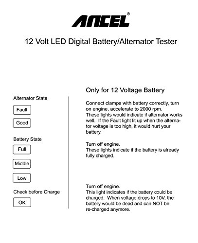 ANCEL BST100 12 Volt Digital Car Battery Tester Vehicle Alternator Condition and Charging System Analyzer - Black