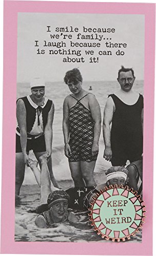 Binding : Apparel Product Description A "I Smile Because We're Family... I Laugh Because There Is Nothing We Can Do About It! / Keep It Weird " high-quality hard enamel pin with a butterfly clip closure. Comes packaged on a double-sided, thoughtfully-coordinated card with space on the back for a handwritten note. 0
