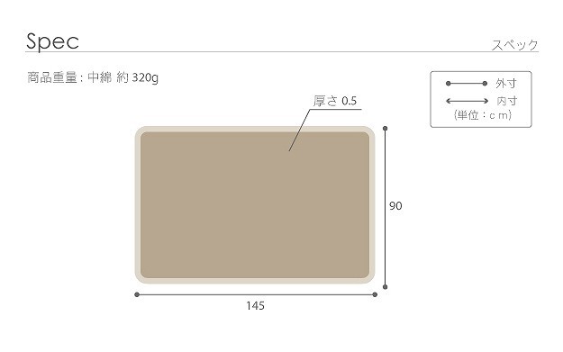 サイズ(cm):145x90、厚さ約0.5cm、中綿量約320g