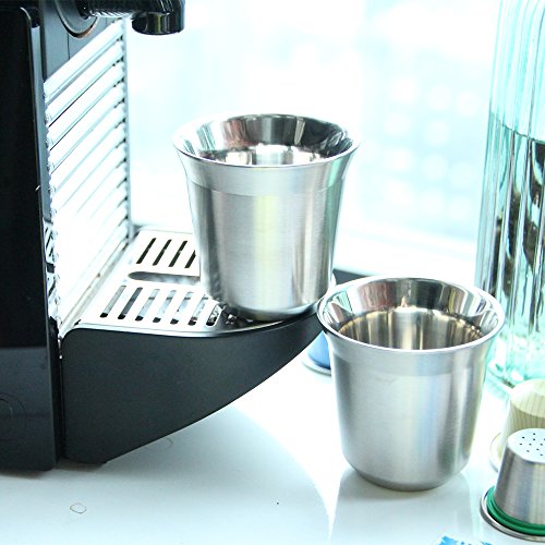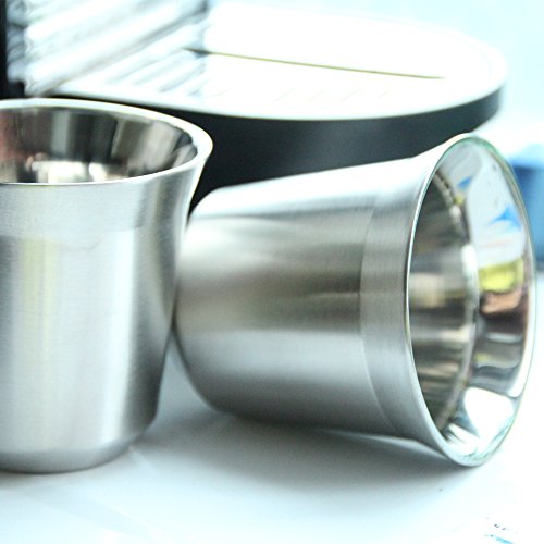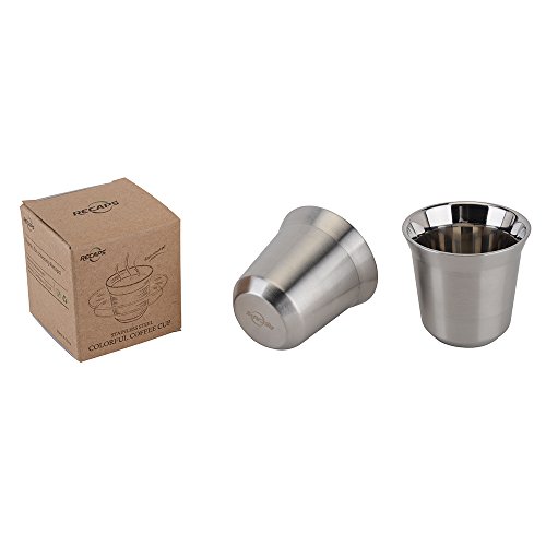Recaps 2pcs/pack Double Wall Stainless Steel Espresso Cup set, 80ml (Silver) (silver)