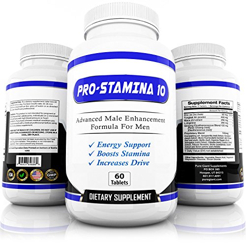 Studio : Pure Giant Supplements Publisher : Pure Giant Supplements Binding : Health and Beauty Product Description Is Pro-Stamina 10 similar to the blue pill? No. Pro-Stamina 10 is very different from the blue pill. The blue pill is taken as a supplement before sexual intercourse. Pro-Stamina 10 is intended for use as a daily supplement to improve overall sexual health. Why are there so many ingredients? Pro-Stamina 10 was formulated using hand-picked ingredients for the results that you desire. Each ingredient in Pro-Stamina 10 works in its own way toward enhancing your overall sexual performance. Is it safe? Pro-Stamina 10 is considered to be safe. It is far safer than many other products, particularly ones that are used before sexual intercourse for performance. However, there are precautions to take. If you have a heart condition or high blood pressure, it is strongly advised that you do not consume this product. Additionally, follow the directions closely, and do not exceed the recommended dosage unless directed to do so by a doctor. Exceeding the recommended dose can be very dangerous and will not improve the results you get from this supplement. Is there anything I should be aware about during use? With the majority of male enhancement products available on the market, there are precautions for erections that may last longer than four hours. However, with Pro-Stamina 10, you do not have to worry about this. This is a daily supplement that improves overall sexual health. It is not just for when you are engaging in sexual activity. However, if you do experience any adverse side effects, discontinue use immediately. At Pure Giant we strive to provide the very best supplements. That's why we do third party lab testing-- so we know, and more importantly, YOU know, what goes into everything we make. Get back the energy and drive you once had! An incredible value for 100% real Male Enhancement! 0