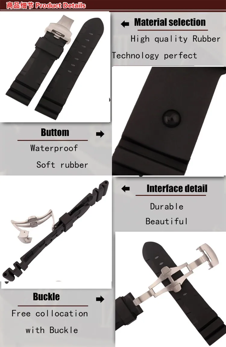 2016 핫 남성/남성 고무 시계 줄, 더블 클릭 나비 팔찌 걸쇠 24 미리메터 26 미리메터 실리콘 고무 무료 배송