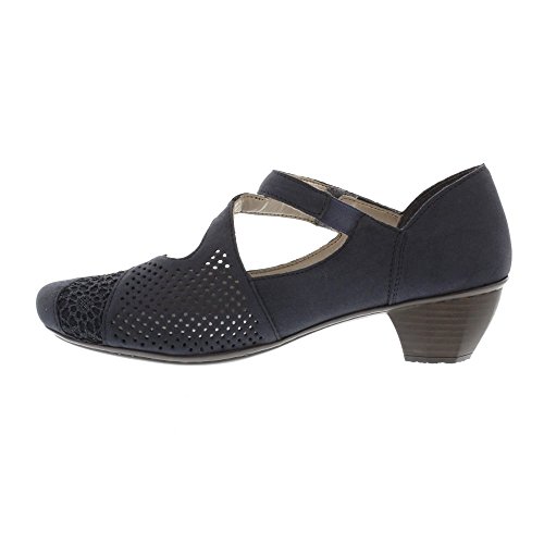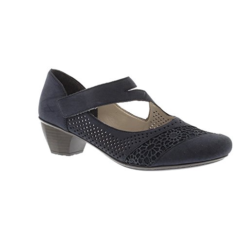 Studio : Rieker Publisher : Rieker Binding : Apparel Product Description These elegant shoes feature decorative crochet detailing and perforations, along with an asymmetric strap which can be adjusted to allow a perfect fit. The shoes include a low block heel which provides a flattering height boost, while the cushioned footbed ensures lasting comfort. 0