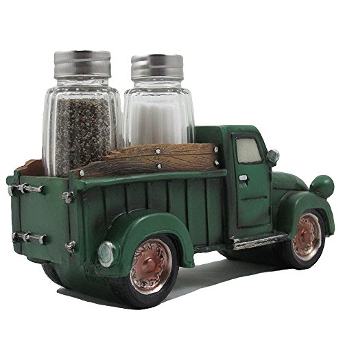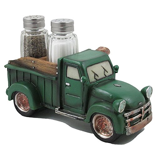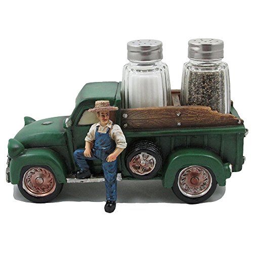 Vintage Farmer and Pickup Truck Salt and Pepper Shaker Set Figurine for Old Fashioned Farm Country Kitchen Decor Sculptures and Rustic Statues or Classic Retro Gifts for Farmers