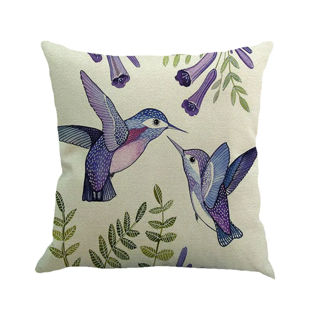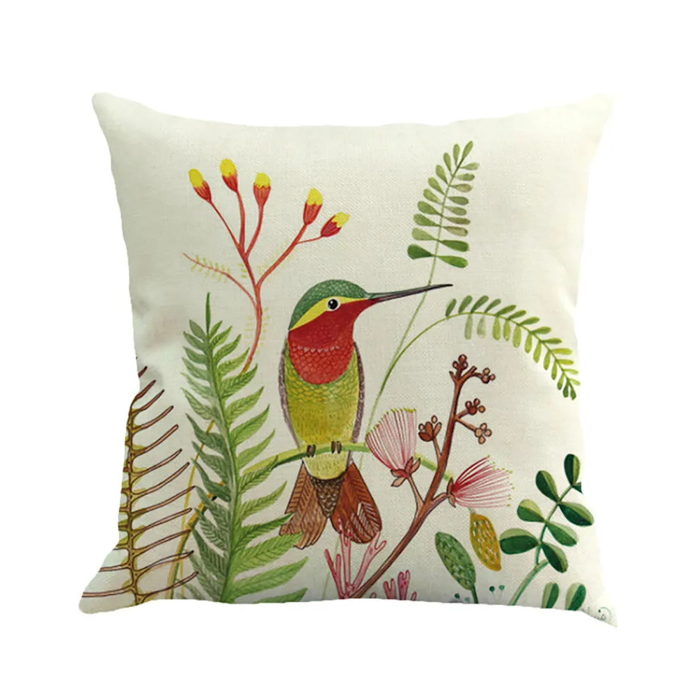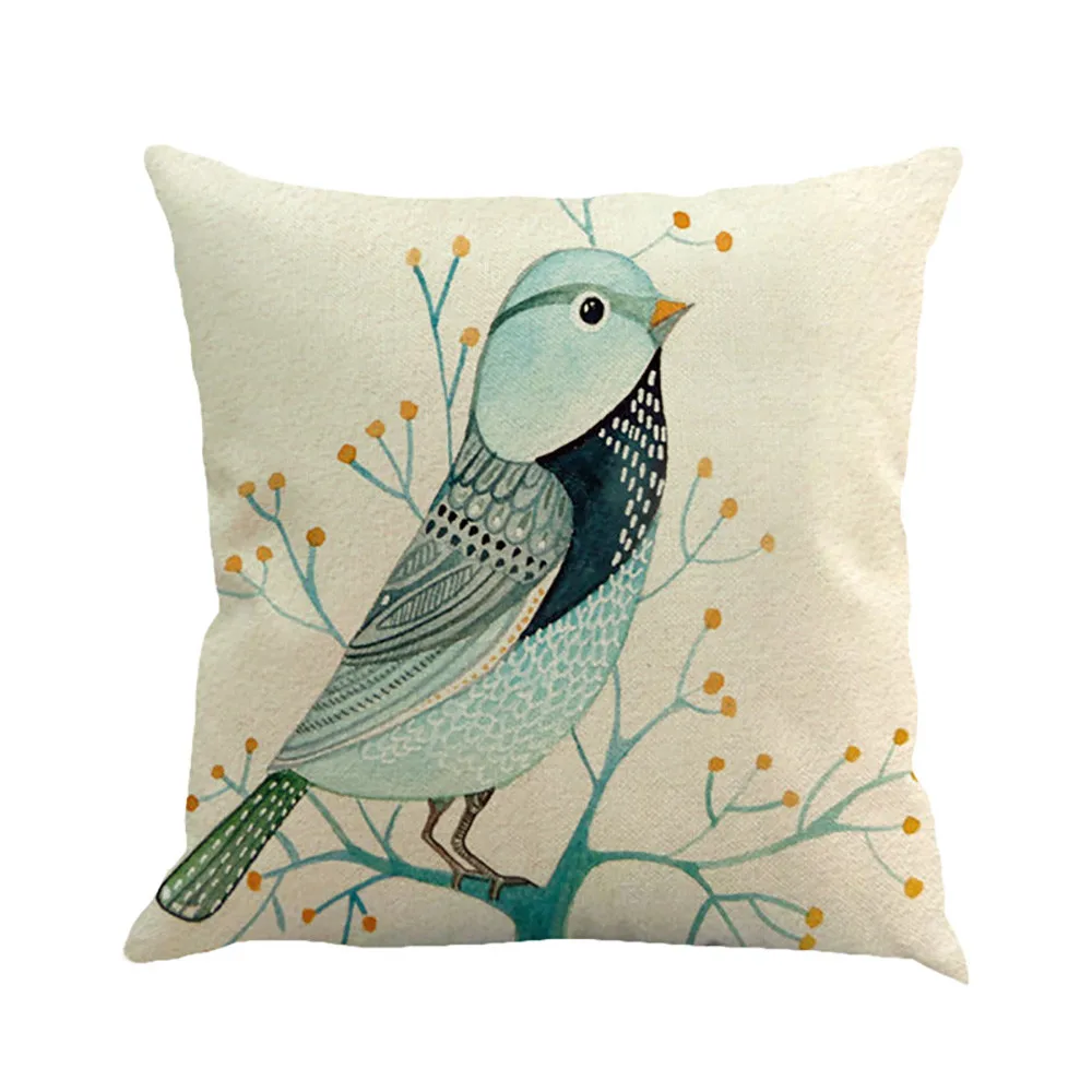 Branches Bird Linen Cushion Cover Throw Pillow Case Sofa Home Decor