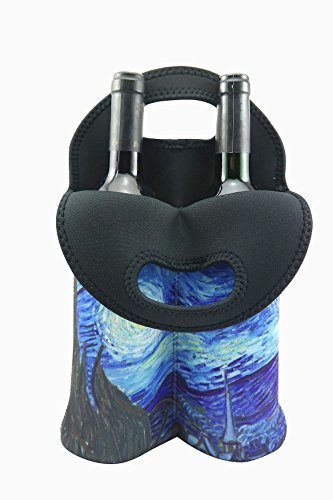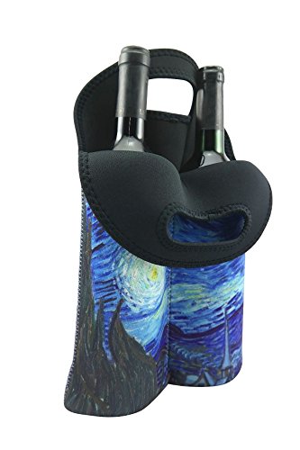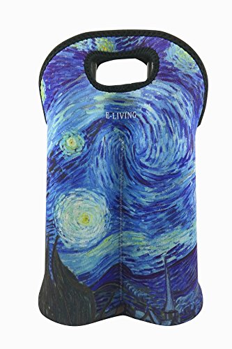 E - Living Neoprene 3-in-1 Two Bottle Wine Tote - 3 Designs Van Gogh/Monet Oil Paintings (2, Starry Night)