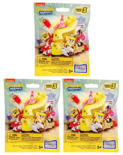 -. Title : Mega Bloks SpongeBob SquarePants Series 3 Action Mini Figure Blind Bag Mystery Packs (3 Packs)