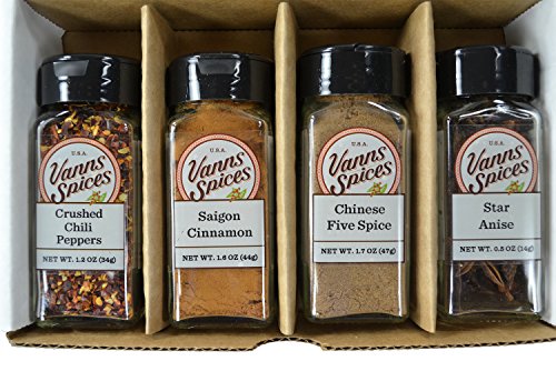 -. Title : Exotic Chinese Spices and Blends Set: Saigon Cinnamon, Five Spice Powder, Crushed Red Chilies and Star Anise