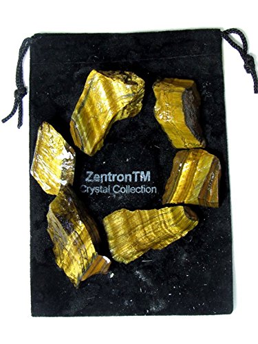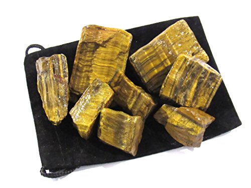 Zentron Crystal Collection: 1 Pound Golden Tiger Eye in Velvet Pouch Large Natural Rough Bulk Stones for Tumbling, Wire Wrapping, Polishing, Wicca and Reiki