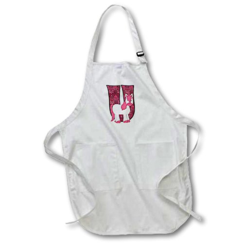 3dRose apr_62882_2 U for Unicorn in Pink for Girls Baby, Kids Monogram U in Vintage Prints-Medium Length Apron with Pouch Pockets, 22 by 24-Inch