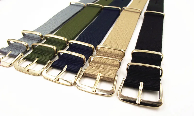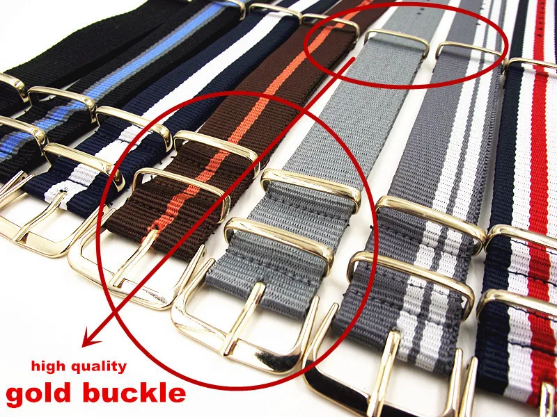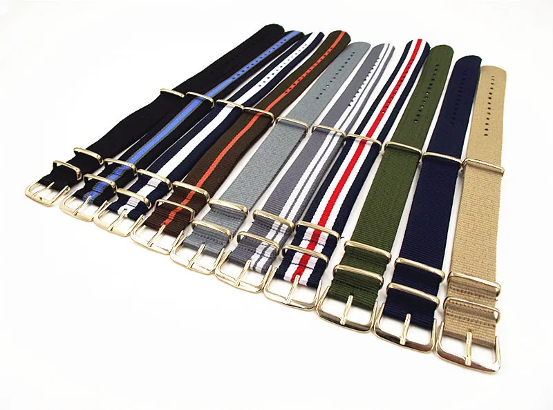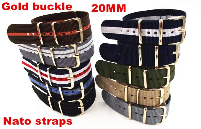 골드 버클 새로운 도착- 1 개 고품질 20mm 나일론 나토 시계 밴드 스트랩 방수 시계 끈 골드 색상