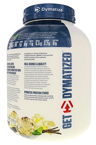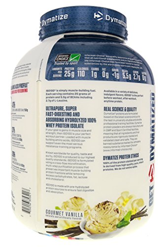 ReleaseDate : 2015-06-26 Studio : Dymatize Nutrition Publisher : Dymatize Nutrition Binding : Health and Beauty Product Description Take your performance to the next level with ISObull100. You expect only to the best from yourself and your nutrition. DYMATIZE ISObull100reg is one of the most advanced and effective proteins available and was developed to give you 100 of what you need to support muscle growth and achieve your ambitions. The Fastest-Acting Protein. ISObull100 provides 25 grams of super-fast absorbing 100 whey protein isolate and has been hydrolyzed for even faster absorption and digestion. It delivers quick amino acid replenishment, perfect first thing in the morning to stop catabolism or after intense training to speed your recovery. Each serving of ISObull100 has 5.5 grams of BCAAs including 2.7 grams of L-Leucine, the BCAA that is directly involved in in optimizing Muscle Protein Synthesis to ensure your workouts are not going to waste. The Highest Level of Purity. ISObull100 uses only whey proteins derived from cross-flow microfiltration processing cold-filtered to preserve the many important whey protein fractions including lactoferrin and immunoglobins, which can be lost in other forms of processing. We have carefully formulated ISObull100 to deliver more of what you want, and less of what you dont want free of gluten, fat and lactose, plus less than one gram of sugar. With only a short list of ingerdients, it is easy to see why ISObull100 is one of the purest proteins available. In addition, ISObull100 is produced in our own GMP manufacturing facility and is Informed-Choicereg Trusted by Sport certified providing assurance to the athletic community that ISObull100 is free of banned substances New Improved Tate. Dymatize has taken flavor to a whole new level Our in-house flavor specialists worked long and hard to create an even more delicious taste. ISObull100, the reward you deserve for all your hard work and dedication. So delightfully delicious, you will look forward to the next shake. YOUR AMBITION. OUR 0