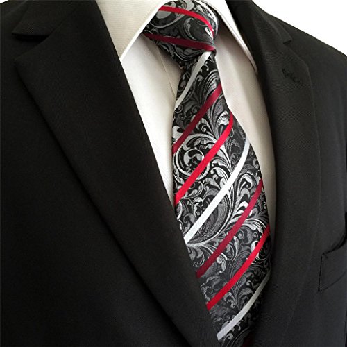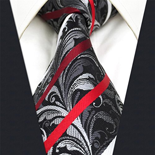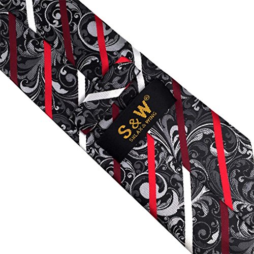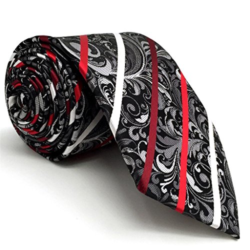 ShlaxWing Designer Geometric Neckties For Men Red Black White Tie Wedding New
