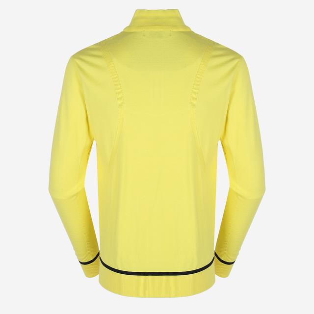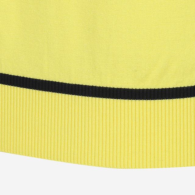 밑단과 소매, 네크라인 안감에 라인 배색으로 포인트를 주었으며 반집업 여밈으로 탈착이 편리한 니트입니다.