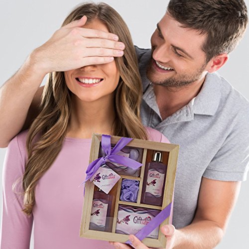 LUXURIOUS BATH EXPERIENCE: Our complete bath gift sets for women bring the spa right into your bathroom. This beautiful lavender bath spa gift set includes shower gel, bubble bath, 6 bath bombs fizzies, bath salts, and a bath puff to perfectly exfoliate your skin.