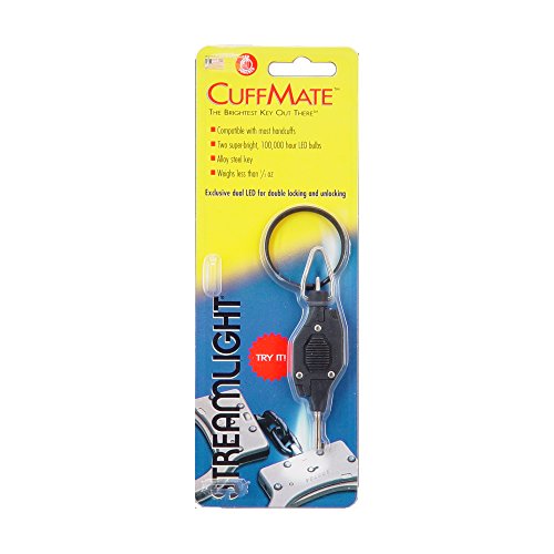 Studio : Streamlight Publisher : Streamlight Binding : Tools Home Improvement Product Description Illuminated handcuff key with 100000 hour dual multi-directional LEDs. Momentary squeeze switch. Double lock pin and swivel key ring connector. Weighs less than .5 oz. Uses 2 CR2016 lithium batteries.ATTRIBUTES?Bulb:?LED ?Burn Time:?Up To 7.5 Hours?Carry System:?Key Ring?Finish:?Black Anodized?Material:?Aluminum?Overall Length (inches):?3.25?Power Source:?CR2016 Lithium x 2?Special Features:?Double Locking/Unlocking Pin for Handcuffs?Submersible:?No?Switch:?Push Button 0