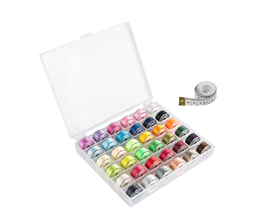 Autoark Bobbin Case Organizers,36 Pcs Clear Sewing Machine Bobbins and Assorted Colors Sewing Thread for Brother/Babylock/Janome/Kenmore/Singer - Soft Measuring Tape,AC-005