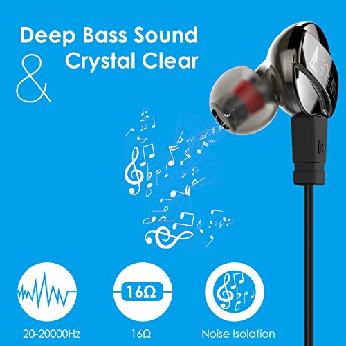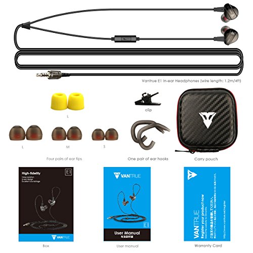 Vantrue In Ear Headphone Noise-isolating Wired Earbuds Sweatproof Sport Earphones with Mic, Remote, Dynamic Crystal Clear and Deep Bass Sound, Ergonomic Comfort-Fit, 3.5mm Jack