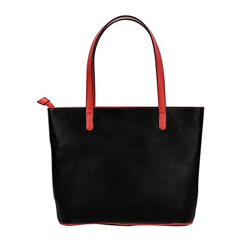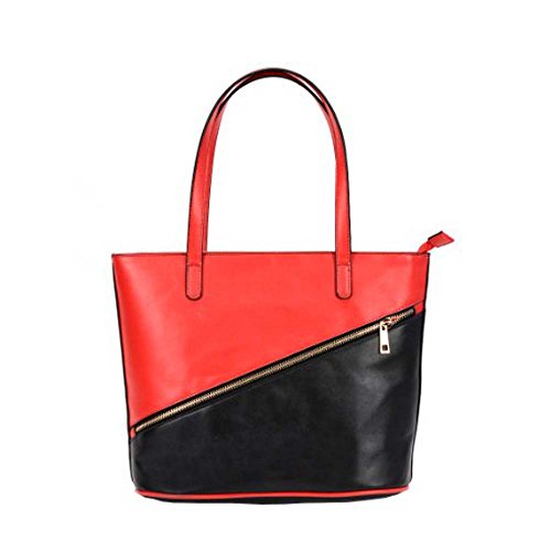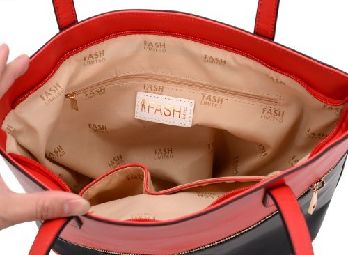FASH Dual Tone Top Double Handle Tote Handbag,Red & Black,One Size