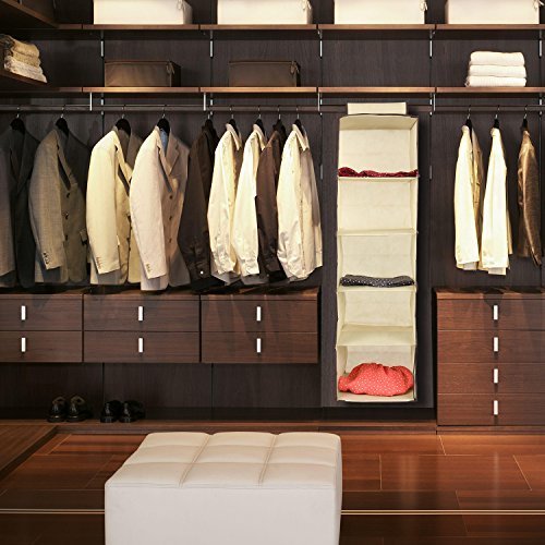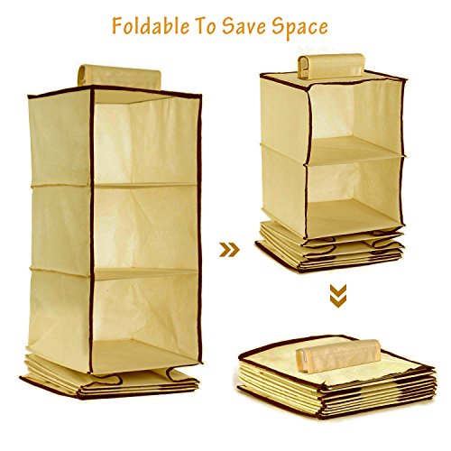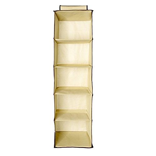 6 Shelf Hanging Closet Organizer,Clothes/Sweaters/Shoe Storage Hanging Shelves with Nonwoven Fabric,Thick Cardboard Boards,Easy Mount (Beige)