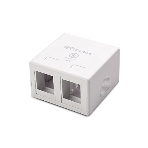 2 PORT SURFACE MOUNT BOX houses a keystone jack insert holder for mounting on a solid surface such as a wall, desktop, or office furniture; Upgrade or change the cable type easily by snapping in a new keystone