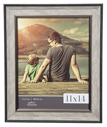 GALLERY SOLUTIONS 11x14 Distressed Dark Grey Wash Wall Document Frame with Black and Silver Detail