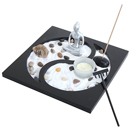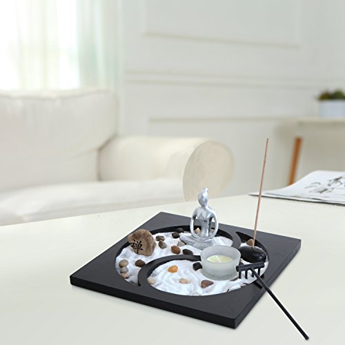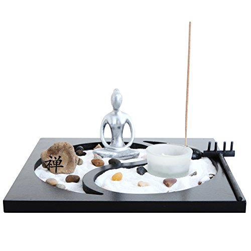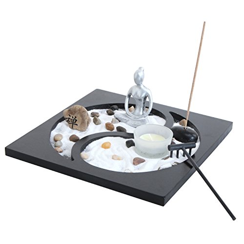 Zen Sand Rocks Candle Holder Taiji Yin Yang Tabletop Rake Garden Kit Incense Burner Gift