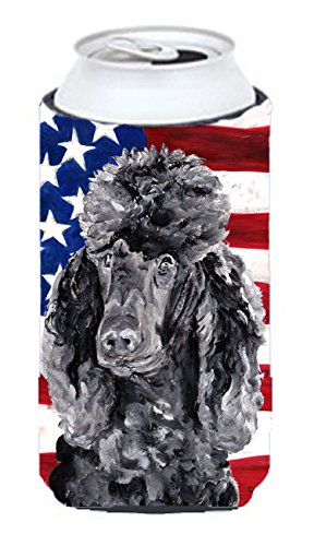 Black Standard Poodle with American Flag USA Tall Boy Beverage Insulator Hugger SC9626TBC