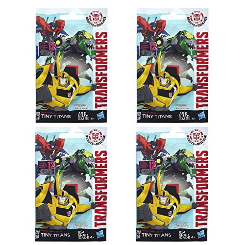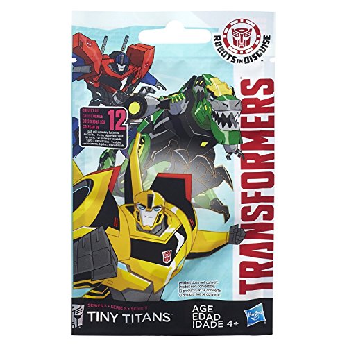 -. Binding : Toy -. Brand : Transformers -. EAN : 0716808610104 -. Feature : Set includes 4 figures and their character cards / Get a small but mighty Transformers figure in this figure pack / Product does not convert / Collect all 12 -. IsAdultProduct : 0 -. Label : Hasbro -. Manufacturer : Hasbro -. ProductGroup : Toy -. ProductTypeName : TOYS_AND_GAMES -. Publisher : Hasbro -. Studio : Hasbro -. Title : Transformers Robots in Disguise Tiny Titans Blind Bags Series 5 - Set of 4 Figures -. UPC : 716808610104