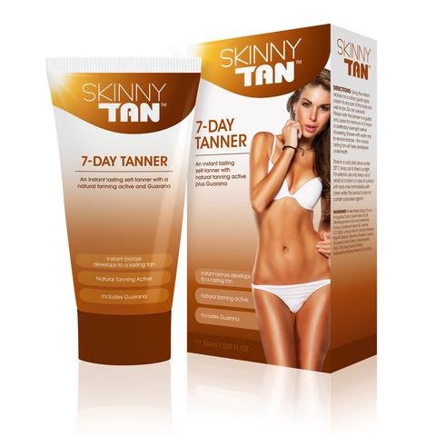 Our most popular 7-day tanner combines a natural tanning active with naturally derived skin smoothing and firming agents. The natural active reacts with the aminos in your skin to create a natural lasting tan that literally cannot streak. Skinny tan 7-day tanner goes on instantly bronze then develops into a perfect streak-free medium tan that is gentle on the skin and lasts for up to 7 days. No drying or flaking, Skinny Tan 7-day tanner fades naturally over 7-days with your skin's natural cell turnover. Can be reapplied for a darker effect. Delicious scent. (4-6 full body applications per tube). Independently clinically studied and verified as the best self-tanner,