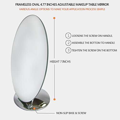 Single-Sided 4.7" X 7" Frameless Oval Beveled Mirror. Various angle options to make your application process simple. This is a lightweight fit to your bedroom and bathroom tabletop for your daily use. WEISHI Shaving Care, Pefect shaving.