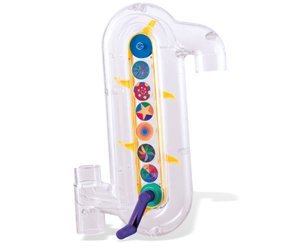 Add interest and interaction to your race course with the see-through hand crank that sets the gears into motion lifting the marble to a higher level. Colors may vary. Height 9".