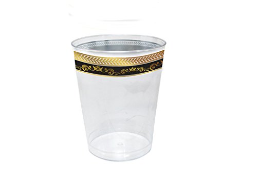 Posh Setting Royal Collection Clear Plastic 10 oz. Tumblers (cups) with Gold/Black Design 40 Pack