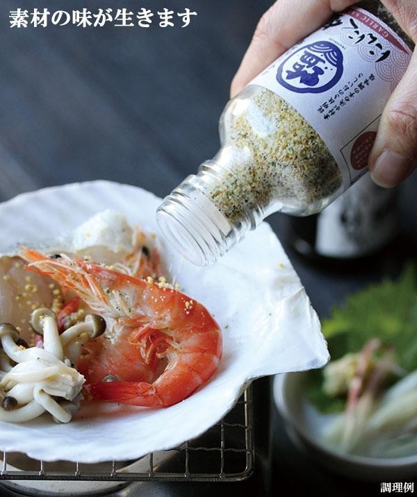 料理の原点の「塩」を求めて、材料にこだわり、丁寧に調味塩を作りました。生肉・魚・野菜などなんでもOK!!おいしさ抜群のにんにく塩で素材の味が引き立ち、美味しくお召し上がり頂けます。 |