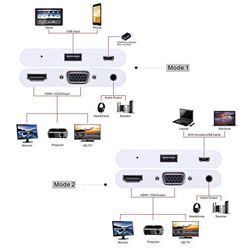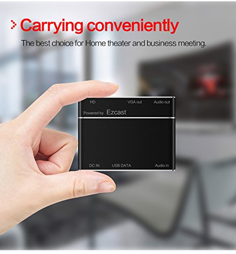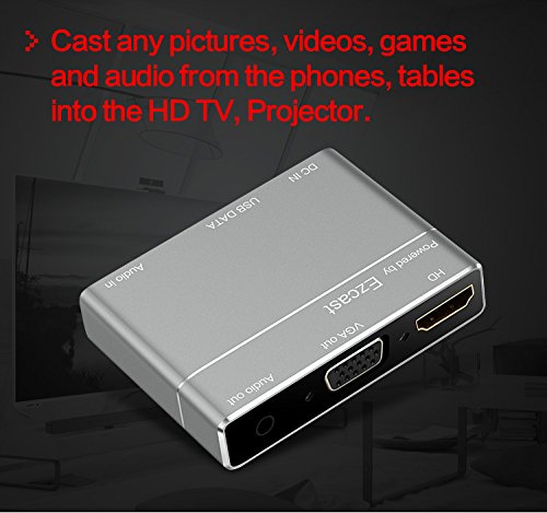 DIWUER Multi-port Digital AV Adapter support various systems enables you convert the video from your mobile, tablet, laptop to a big monitor. Most importantly, it could update regularly to keep compatible with your latest operating system. Specification Type: Digital AV Adapter (Powered by EZCast) Connector A: Micro USB female USB-A female Reset Connector B: HDMI female VGA female 3.5mm Jack Audio female. Material: Aluminum Size: 82*52*14.5MM HDMI support 1080/30HZ VGA support 1280 x 720 It can connect to HDMI / VGA Monitor / HDTV with 3.5mm Jack Audio Support Apple IOS(Work with iOS 8.0 to iOS 10, NOT work with iOS 11), MAC system Support Android system Support Windows XP/Windows 7/Win 8/Win 10 systerm How to Install the Adapter 1. Connect to TV, Projector, Monitor Connect the HDMI or VGA port to the corresponding interface of TV, projector, monitor, and choose the corresponding signal channel. It will support audio and video output at the same time. 2. Connect to computer, Windows PC, Mac Book, IOS, Android 1) Connect to Desktop/Laptop: Prepare a standard USB cable, then connect the USB-A port to your desktop or laptop, and connect the micro 5 pin port to our digital AV adapter. 2) Connect to IOS/Android devices: The standard USB cable will be used as a power adapter. How to Install the Software 1. iOS and Android user download the EZCast on App Store or Google Play. 2. Windows and MacBook user download the EZCast via www.iezcast.com or www.iezvu.com Package Included 1x Digital AV Adapter 1x Micro USB to USB cable. 1x User Manual Warranty and service DIWUER is committed to offer you high quality product and friendly services. DIWUER extend a 12 Month worry-free warranty and friendly customer services for every buyer of DIWUER. 0 |
