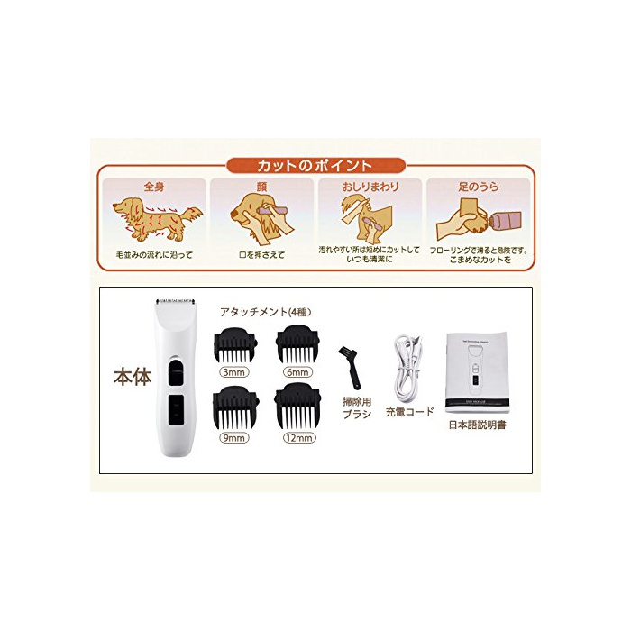 【베어 길이 조절 가능】컷의 길이도 부속 어태치먼트에 조절 가능(3/6/9/12mm).베는 것이 지나치지 않는 바와 같이(하도록),동체나 수주위,족등 편안히 길이를 같게 하는 것 를 할 수 있습니다.자유롭게 베어 길이 조정 할 수 있는 애완동물 용품,묘바리 캔.애완동물의 피부를 상처를 입힐 걱정이 없어 안전 컷 할 수 있는 셀프 컷 바리 캔입니다.※1년 보장 부착