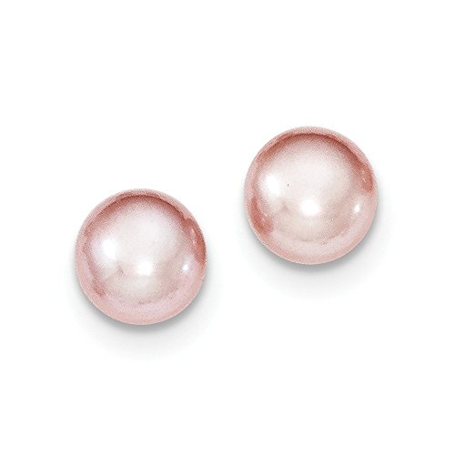 Solid 925 Sterling Silver 8-9mm Purple FW Cultured Button Simulated Pearl Stud Earrings