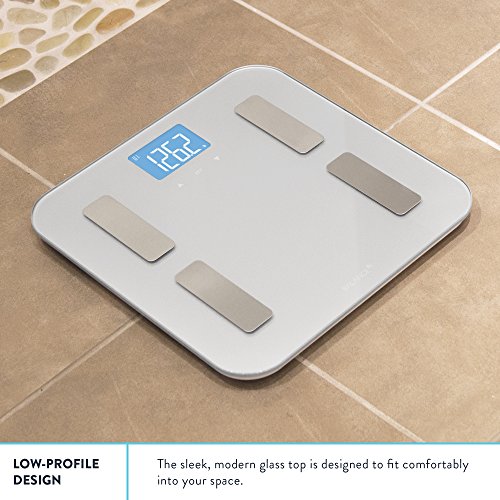 -. Feature : This streamlined scale measures 6 key metrics to give a more detailed picture of your health. / ACCURATE: Within .2 lbs. MEASURES: weight, BMI, body fat, muscle mass, hydration, bone density. / LOW PROFILE: Sleek tempered glass design matches any bathroom. Stores easily in between weigh-ins. / PERSONAL CUSTOMER SERVICE: Get answers from the team at our St. Louis headquarters. 5-YEAR WARRANTY. / MAKING THINGS BETTER: We make high-quality products that give back to our charity partner Love146.